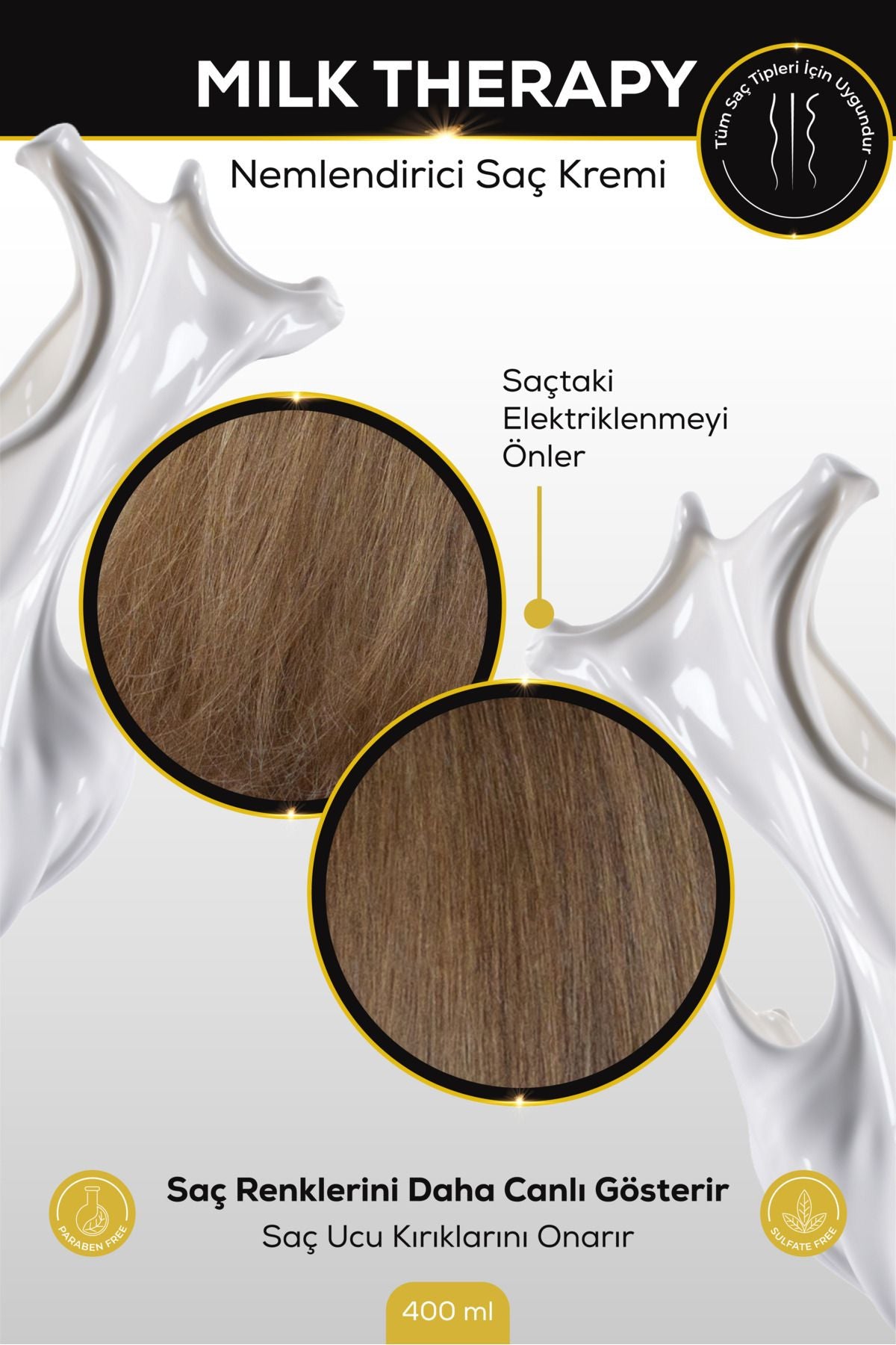 Bu saç kremi, süt proteininden elde edilen 12 temel aminoasit, E Vitamini ve zengin içerikli özel formülü ile yıkama sonrası kolay tarama, canlılık ve parlaklık sağlar. Saçtaki elektriklenmeyi önlerken, içeriğindeki amino asitler sayesinde doğal protein yapısını güçlendirerek saçın sağlıklı bir görünüm kazanmasına yardımcı olur. İpeksi bir yumuşaklık verir. Kullanım Şekli:Yıkanmış ve durulanmış saça, saç derisine değdirmeden nazikçe masaj yaparak uygulayın. 1-2 dakika bekleyin Parlaklık, İpeksi yumuşaklık
